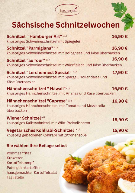 wir heißen Sie herzlich im Lerchennest willkommen. Unser Restaurant steht für regionale und saisonale Speisen in den Traditionen der sächsischen Küche. Wir bieten Ihnen klassische und auch neu interpretierte Gerichte, die Ihnen unsere Region ein Stück näher bringen. Genießen Sie bei uns die sächsische Kaffeehauskultur mit typischen Leipziger Süßspeisen und hausgemachten Kuchen. Schon in unserem Namen liest man, dass die berühmte Leipziger Lerche dabei nicht zu kurz kommt. Wir freuen uns, Sie als Gäste begrüßen zu dürfen.